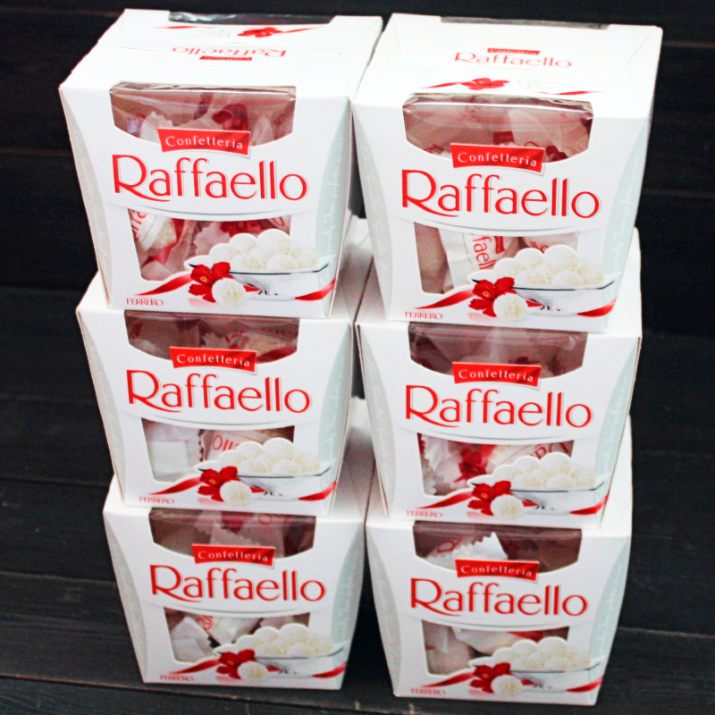 Полностью оригинальные конфеты Raffaello классик. Целых 6 коробок по 150 грамм весом каждая.